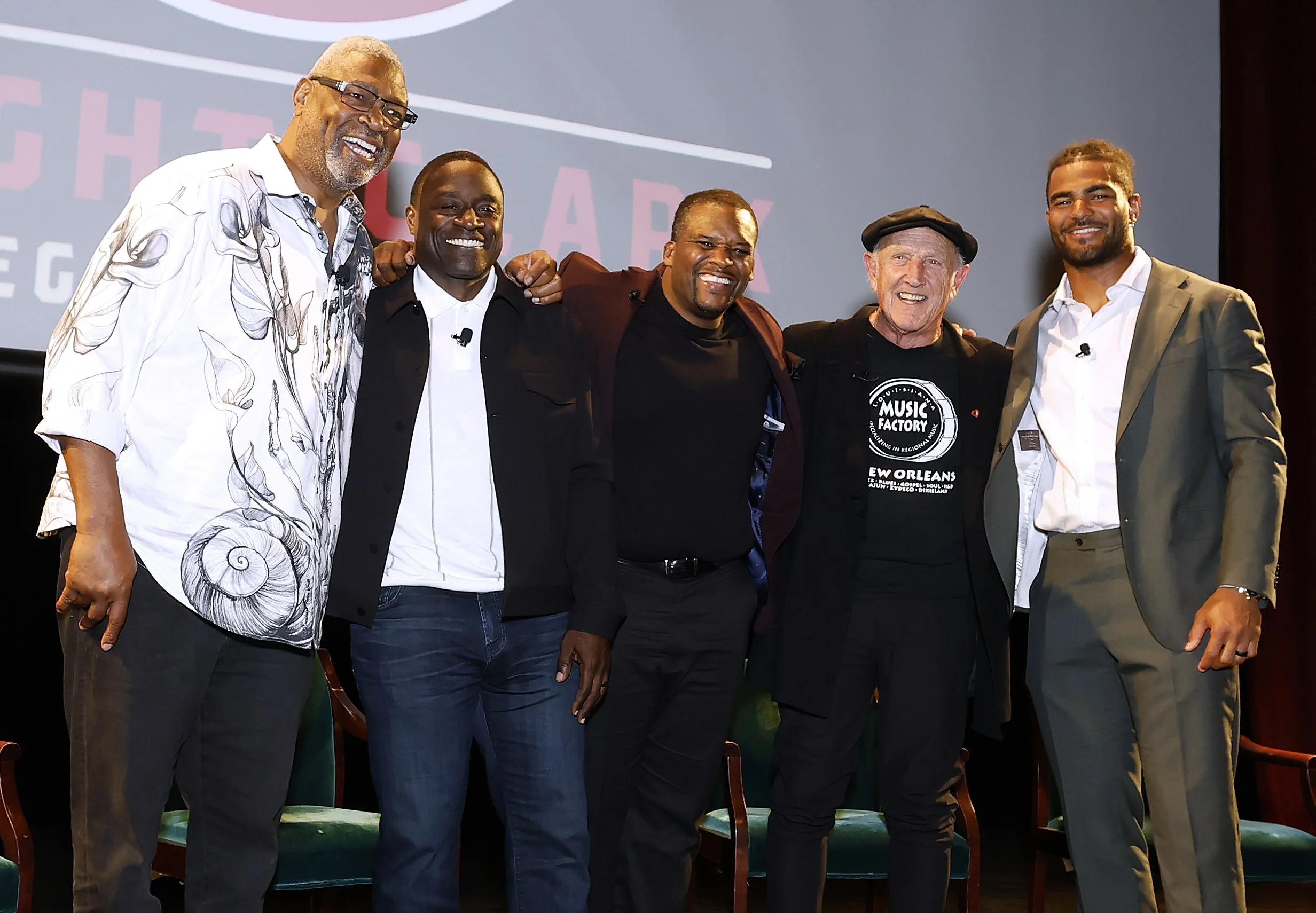 Zagaris was joined on stage by a powerhouse lineup of 49ers greats: Charles Haley, Garrison Hearst, Anthony Adams, and current All-Pro linebacker Fred Warner. Together, they revisited rarely seen photos from the archives and delivered a lively, often hilarious conversation filled with behind-the-scenes stories and good-natured jabs that had the audience roaring with laughter.